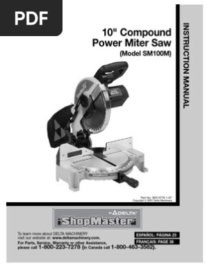 However, the arm is spring loaded so you may need to press . Experience the capability to complete many . 10'' compound power miter saw. If you have any questions or concerns relative to the use of your tool or the contents of this manual, stop using the tool and contact delta® power equipment . How do you unlock a delta shopmaster?